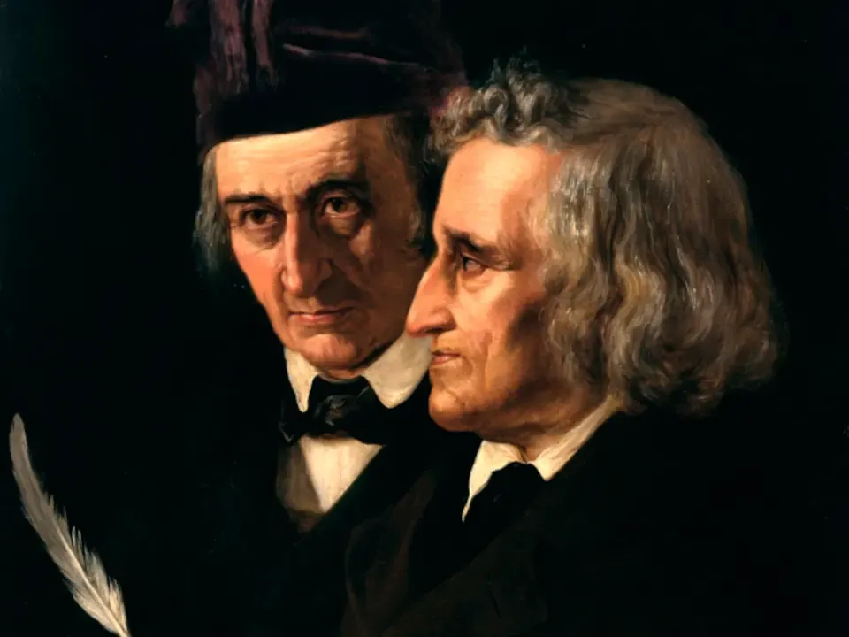 Jacob Grimm (1785–1863) und Wilhelm Grimm (1786–1859), Herausgeber der mehrbändigen „Kinder- und Hausmärchen“